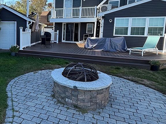 LAKE FRONT w/the WOW factor - Attractively RENOVATED - 1,817sqft home perfectly set on the Lake w/50(+) foot private dock & panoramic lake views from almost every room. Magnificent Kitchen w/6 burner gas stove, stainless appliances, granite tops, wood cabinets, floors & ceilings, open to eating area w/sliders to 27'x27' composite deck. Perfect for entertaining or simple peace & tranquility w/stone pathway to built-in wood fire pit. Master bedroom w/sliders to private upper deck, large walk-in closet, & gorgeous bath w/walk-in glass shower, soaking tub, vaulted ceiling & skylight. Home features: unique open floor plan, custom wood ceilings & walls, sky lights, cathedral & vaulted ceilings, recessed lighting, mini splits for AC, 2 sheds for storage. NEWER - clapboards, vinyl trim, roof, Anderson windows, fenced backyard, septic system & improved driveway is custom w/stone pavers. Time to Relax, swim, boat, water toys & fishing right from your own backyard !! Love where you live !!