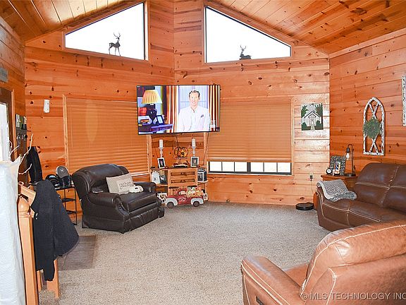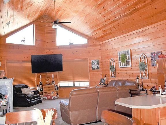 Escape to this stunning lake home built in 2013, nestled on 1.72 acres of beautiful natural terrain and rich forage. This 3-bedroom, 2.5 bath retreat perfectly blends rustic warmth with modern comfort. Step Inside to find knotty pine walls and ceilings that create a cozy, cabin-like ambiance throughout. The open concept living and kitchen area features soaring vaulted ceilings and custom pine cabinetry, providing an inviting space for gatherings. A sliding glass door opens to a partially covered patio with a fire pit area, ideal for relaxing evenings under the stars. One upstairs bedroom holds the relaxing private balcony that offers peaceful views and a perfect spot to enjoy your morning coffee with a beautiful sunrise. This home is a must see with the feeling of luxury within its community. Advance notice request for showing, owner occupied.