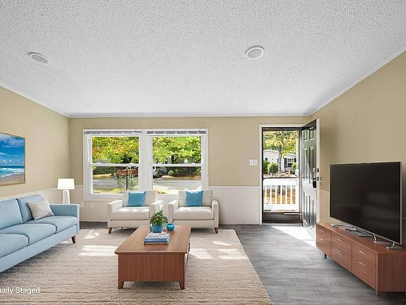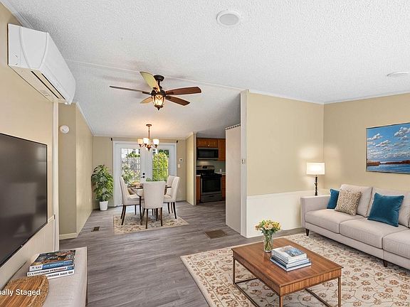 Welcome to Great Brook Park – A 55+ Community in the Heart of the Lakes Region. Ideally located just minutes from I-93, this beautifully maintained 3-bedroom, 2-bath home offers comfortable, easy living in the desirable 55+ community of Great Brook Park. Recent upgrades include brand-new vinyl flooring and plush carpeting throughout. The spacious primary bedroom features an en-suite bath complete with a walk-in shower for added convenience. Two energy-efficient mini-split heating and cooling units ensure year-round comfort. Step outside to enjoy a private backyard patio, perfect for relaxing or entertaining. The refreshed landscaping and newly added bark mulch add great curb appeal to this move-in-ready home. Some photos are virtually staged. Agent interest.