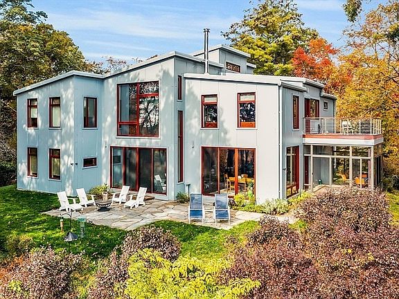If you love Contemporary design this is a MUST-SEE! Modern industrial architecture meets LEED Certification in this custom designed & built 'green' home blending energy efficiency, sustainability & high level design w/low maintenance inside & out. Privately sited along Sudbury River abutting conservation land w/deeded canoe access every room offers a private connection to nature. Clean lines and a mix of textures, materials & colors make this home chic w/luxe details like radiant heat, polished concrete floors, Lutron blinds, floating stairwell & more! Well appointed kitchen w/breakfast bar, DR w/Tulikivi fireplace, 2-story LR & a sunroom each w/walls of glass lead to bluestone patios allowing seamless in/outdoor living. Flexible floorplan with 1st & 2nd level primary suites, 1st level meets Americans w/Disabilities Act standards & elevator expansion opp. Upstairs 2 add'l BR's, 2BAs, home office, laundry, sitting rm w/roof deck & 3rd level bonus room. Mudroom to garage w/Tesla charger.