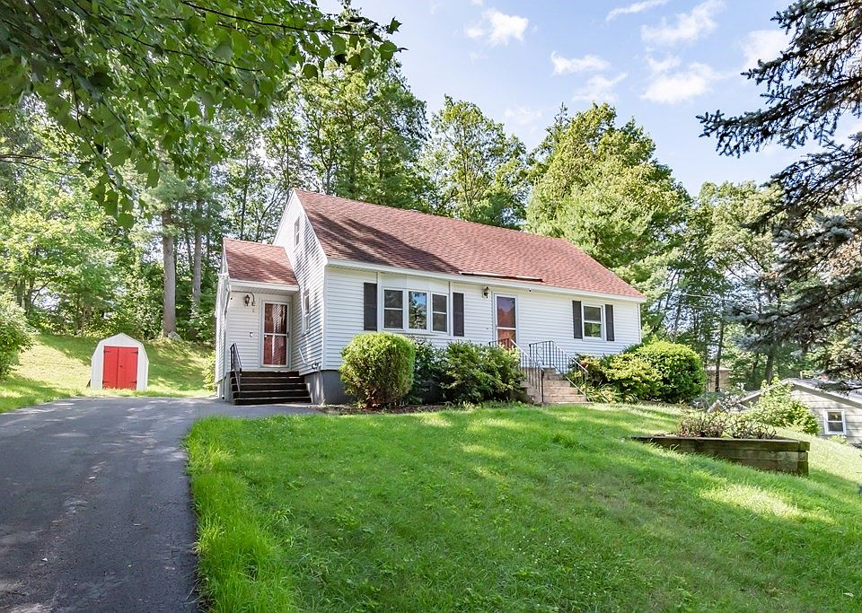 Attractive, updated 4 Bedroom, 2 Bath Cape style home in a lovely Nashua location. This home sits up from the road and offers a private backyard with a wooded area behind a large composite deck. An Updated kitchen opens to a dining area with a large bay window overlooking the backyard. All windows have been replaced along with an updated kitchen and baths. The Main entry of the home enters through the living room with brand new carpet, a sunny bay window and access to the dining area. The first floor also has a completely updated full bath, and two bedrooms. One of the bedrooms provides access to the composite deck and backyard as well as offering a built-in desk and shelf storage. The second floor offers 2 large bedrooms and spacious, updated ¾ bath. If you need even more living space, the finished lower level offers built-in shelving in a bar area, a large open family room space and an office! The unfinished area of the lower level offers ample storage and contains laundry space.