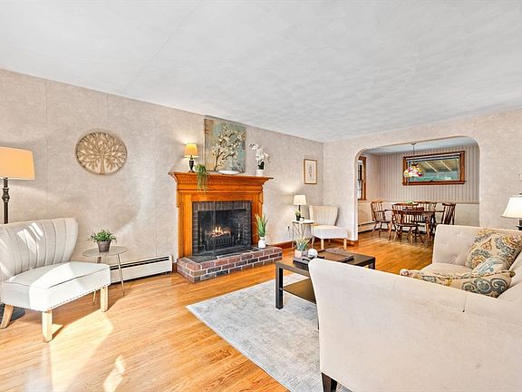 Charm Abounds in this Classic 50’s Ranch offering great space & a lovely yard & FANTASTIC LOCATION! Tucked at end of a quiet cul de sac it’s the 1st house for sale on the street in decades. Attractive exterior with welcoming front walkway, masonry stairs & mature landscaping. Main level features oversized Living Room w/FP & opens beautifully to both Dining Room & Kitchen with plenty of cabinet & counter space. 3 Spacious Bedrooms, all with nice closets & lots of natural light. Full Bath has updated bath-fitter tub, and the 3 Season Sunroom, overlooking serene setting, beautifully completes 1st floor. LL is partially finished w/quality pine paneling & 2nd FP & offers easy access to 1-Car Garage. Wood floors & good storage throughout. Updates include approx. 3-yr old Roth Oil Tank & Garage updates include new ceiling, electrical & auto-door opener. Offering tons of potential, you can move-in as is & renovate it at your own pace. Expansion potential? Buyers to do all due diligence.