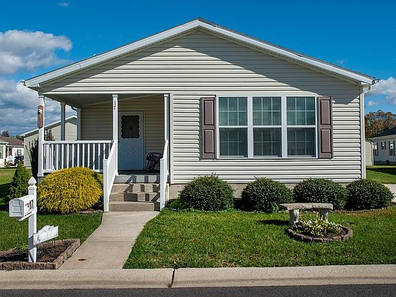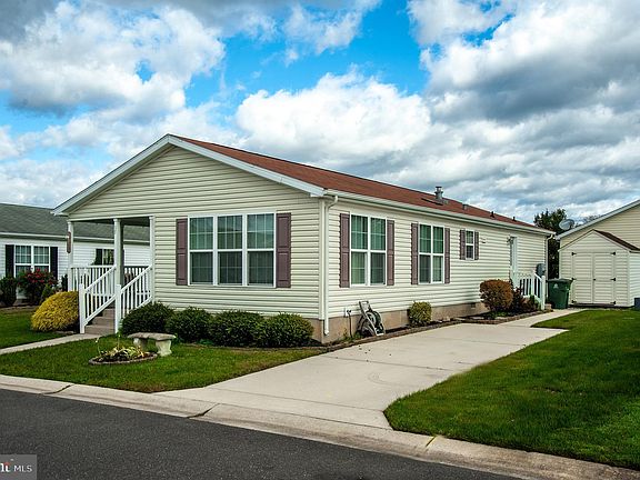 Welcome to 17 Lydian Drive, a manufactured home located in Sunny Estates, a serene 55+ community. You will love this home the moment you arrive as you ascend the large charming font porch, perfect for relaxing on Fall afternoons. The Open Floor Plan features Living and Dining Room combination, Sunroom and all rooms with Vaulted Ceilings. The Beautiful Kitchen showcases a Breakfast Bar, electric stove, built -in microwave, fridge, dishwasher and a skylight with natural sunlight. The spacious laundry room is suitable for additional storage and a walkout to the driveway and backyard shed. This home features a Primary Bedroom en suite accented with a spacious Walk-In Closet and Full Bath with a Walk-In Whirlpool Bathtub with Shower option. This home includes a second Bedroom with New Carpeting, a spacious closet and Full Hall Bath. Freshly Interior Painted. Sprinkler System. Easy access to major highways, shopping, medical facilities, restaurants, Philadelphia and Shore communities.