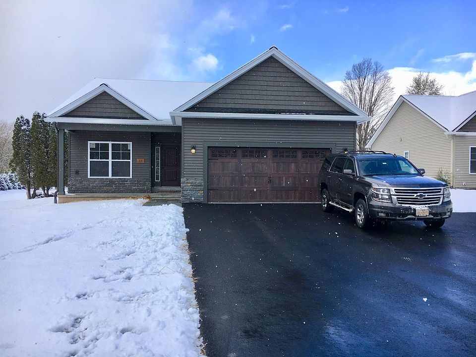 Enjoy this two year old one story custom home! The open floor plan allows easy entry from the open foyer into a spacious great room with 10' tray ceilings and beautiful tile flooring. The generous kitchen features an island with Brentwood sandstone countertop and granite on the perimeter of the cherry cabinets. The warm colors and rich cabinets bring an elegant yet welcome feeling to the home. The main room features a barnwood clad wall as a focal point. The first floor laundry room with hook-up for washer & dryer, and the stand alone wash sink is a definite plus! Adjacent to the laundry is a full bath with pocket door to a spacious bedroom. Enjoy the private en suite featuring a large master bedroom, a huge walk-in closet, and a large master bath complete with a tile shower and double vanities. The home features oil rubbed bronze hardware and lighting fixtures throughout. Drywalled full basement has egress window and is great for additional living space and/or storage. The home also has an attached 2 car drywalled garage. Includes stainless steel appliances: microwave, dishwasher, and gas range & oven. Refrigerator, washer & dryer are NOT included. Central A/C and high efficiency furnace and hot water heater. Walking distance to the village and the Victor Central Schools. Due to covid we are requesting only serious prospective tenants apply. Applicants must complete the Zillow application, and upon review and approval a viewing can be arranged. Tenant responsible for gas & electric, water/sewer, and cable/WiFi. Refrigerator and washer/dryer hook ups are available but those appliances are not included. Landlord mows the lawn; tenant is responsible for snow removal. Pets are not allowed.