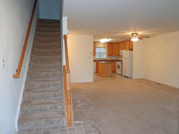 Interior townhouse with front kitchen floor plan. Large living, Dining room and kitchen. Townhouse comes complete with appliances including washer and dryer. Nice deck for relaxing backs to trees. Full unfinished basement with walk-out. Master bedroom has full bath, walk-in closet and tray ceiling. All lawn care and landscaping is provided by the owner. Very convenient location.
