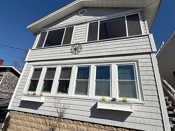 Enter this beautifully renovated 3 bedroom contemporary home through a private brick "Beacon Hill" patio. A welcoming large Chef's kitchen features an exposed brick wall, stainless steel appliances, 5 burner gas stove with hood, granite counters and tiger hardwood floors. A dining area, den/office, sunny living room, first floor bedroom with large walk-in closet and a spacious marble bathroom complete this level.The second floor has a dramatic family/great room with a beamed cathedral ceiling, large windows provide seasonal ocean views. Two more bedrooms, a full bathroom and a spacious laundry room with sink and mini fridge complete this level. The one car driveway leads to the fenced brick patio and provides a beautiful outside living space. There is an additional parking space out front.The exterior of the home has cedar impression shingles, an 8-year old roof and a gutter leaf guard system.Recent upgrades: (2) mini-splits, EV car charger, Electrical upgrade & blown-in insulation.