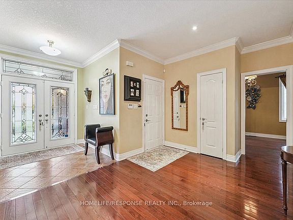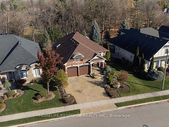 Welcome to this luxurious custom-built executive bungalow by Arthur Blakey, nestled in the prestigious Streetsville Glen community. Offering nearly 4,000 sq ft of finished living space, this stunning home sits on a premium 60 x 153 ft lot backing onto serene conservation land-a true country retreat within the city. Step through grand double doors into an open-concept layout featuring hardwood flooring, extensive crown molding, pot lights, and three skylights that fill the space with natural light. The chef's kitchen is equipped with granite countertops, a center island, and high-end stainless steel appliances, including a built-in oven, cooktop, microwave, fridge, washer/dryer, and central vacuum system. Elegant living and dining rooms are complemented by a double-sided gas fireplace, creating a warm and inviting atmosphere. The beautifully landscaped backyard is perfect for entertaining, complete with a deck off the kitchen, interlocking patio, and fully fenced yard. The patterned concrete driveway leads to a double-car garage and 4-car driveway, surrounded by wrought iron fencing for added privacy and curb appeal. Additional features include an ABUS sound system throughout, phantom screens, and custom blinds and drapes. The renovated basement offers a separate entrance, brand-new kitchen, private laundry, two full-sized bedrooms, an office, and a modern 4-piece bath-ideal for extended family or rental potential. Basement access can easily be reconnected to the main floor if desired. Exterior updates include new concrete steps to the backyard and storage under the deck. Located close to golf courses, conservation areas, top-rated schools, shopping, public transit, and major highways, this meticulously maintained home combines luxury, privacy, and natural beauty in one of Mississauga's most desirable neighborhoods.