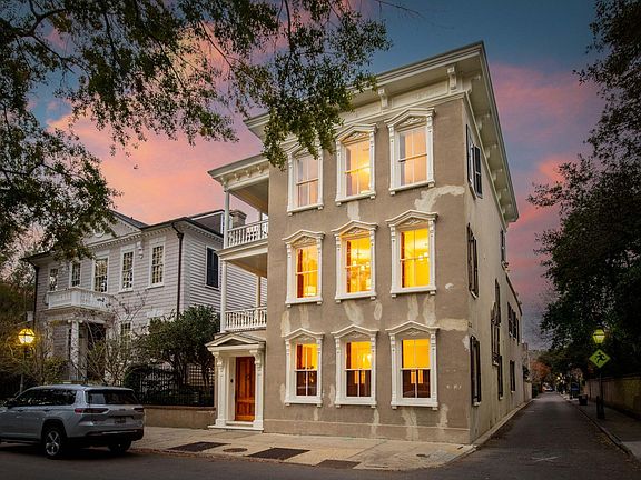 The John Edwards home also known as the Samuel Chadwick house, circa 1756 is one of the finest structures on the Charleston peninsula South of Broad located on an oversized and beautiful private lot. This is a rare turnkey opportunity to live in an elegantly renovated home that exudes grandeur. The three story masonry home has been thoughtfully and meticulously renovated while maintaining historic details of the period. Enter through a beautifully stained wooden four paneled door to three gracious triple piazzas with panelled ceilings and Tuscan columns. There are gallery doors along the three piazzas that run the length of the house allowing access from all rooms to the outdoor living spaces. Fine details include beautiful large rooms with high ceilings, medallions, original hardwoodfloors, and working fireplaces. All new updated lighting throughout the house to include Murano custom designed chandeliers and sconces in the main living areas and staircase. Modern kitchen with all new appliances to include wine fridge, La Cornue range and matching hood, farm sink, quartz countertops, refrigerator, dishwasher, and new hardwood floors. Unique Parquet on stairs and second floor landing welcome you to the completely renovated master suite with office area, walk in closet, bath with new Carrera marble countertops, new gold tub, lucite and gold hardware and lighting. A new bathroom with fireplace has been added on the additional second floor bedroom. Two half baths have been updated; one features a lovely Gucci wallpaper. New roman shades and curtains have also been added throughout the house. The main house has been painted completely both interior and exterior. The private walled courtyard and garden designed by Sheila Wertimer has an inground pool with low maintenance grass edging and beautiful lush landscaping with a decorative fountain. The guest house has its own entrance off the courtyard and has also been updated with new lighting throughout. The guest house has been painted throughout. New copper lanterns adorn the exterior of the main house and guest house. In addition new wooden exterior shutters have been added. A true rarity, there is a two plus car garage heated and cooled with additional off street parking on an adjacent pad accessed from Lamboll Street.
