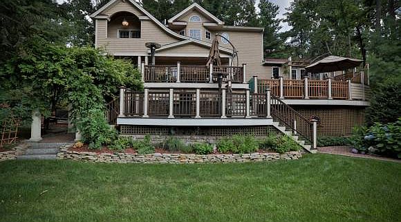 Be prepared to be amazed! Truly a work of art. Exquisite home, masquerading as a Gambrel, tucked away & private among 1.18 acres of professionally landscaped grounds. Near Bicentennial school, shopping & easy access to Rt 3 & MA. Luxurious custom home presents one surprise after another. Hand crafted crown moldings, raised-paneled wainscoting, arched entries, curved walls, built-ins, and coffered ceilings are unique details that frame every room, w/ teak/oak floors, granite & marble in abundance & surround-sound throughout. Gourmet kitchen w/island & htd flrs, Wolf, Sub Zero, Gaggenau & Miele appliances, gas fireplace,walk-in pantry w/desk surrounded by huge din rm,2 liv rms w/fireplaces, wet bar, all bathed in natural light of 8' windows, 3 French doors opening to multi level decks. Mstr bed w/gas fireplace, luxurious rain shower, spa tub.