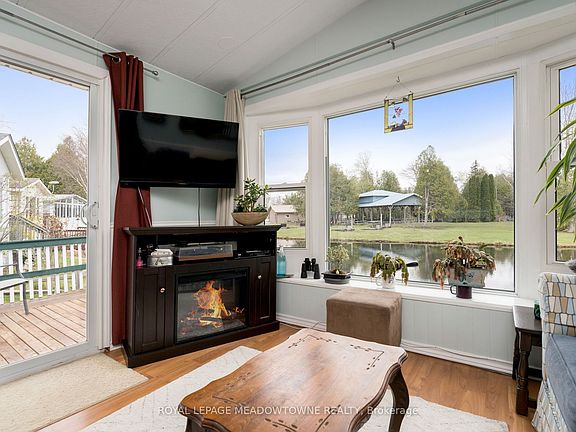 You like to keep your feet in the ground and you aren't ready to give up your garden. You appreciate mature neighbours and like to stop and smell the roses. This one bedroom just south of Guelph is what you are looking for. Both the office and living room have views of the water. This efficient unit has combined kitchen/dining space with new appliances. It overlooks the living room with walk-out to the deck where you will want to spend much of your time. The 4 pce bathroom has a separate water closet and shares space with the stackable washer/dryer. The bedroom has a wall of storage or overflow to the 8 x 12' shed for your e-bike, paddleboard and garden tools. 2 Parking spots and 5 kms to the 401 and to Guelph.