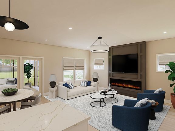 Electric fireplaceStylish lvp floorsQuartz countertopsRelaxing screened-in patioCustom lighting fixturesInground sprinklers