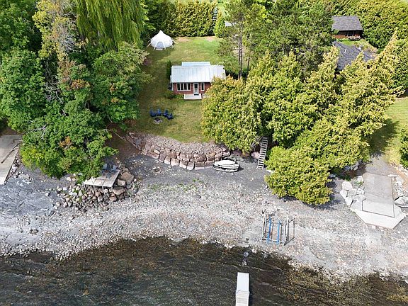 Discover this beautifully renovated mid -century cottage perched on the shores of North Hero Island, offering 110 feet of direct, gradual shoreline along the Inland Sea with a protective sea wall. Enjoy breathtaking views of the Green Mountains and crystal-clear waters ideal for swimming, paddling, boating, or sailing right from your backyard. Inside, the open-concept kitchen, living, and dining area was thoughtfully redesigned to blend modern comforts with timeless cottage charm. The kitchen features quartz countertops with an expansive 8 -foot peninsula, seating for 3–4, high-end Frigidaire appliances, double sink, and custom Faber wood cabinetry with soft -close drawers and open shelving. The light-filled interior is enhanced with shiplap walls, new LVP flooring, fresh carpet, and a renovated ¾ bath. Enjoy peaceful restorative lakeside slumber in one of the 2 bedrooms with garden and lake views and fresh new carpeting. A dedicated laundry/mudroom with washer and dryer adds convenience. A new mini -split heat pump ensures comfort from early spring through late fall, making this the perfect three-season retreat. Located just south of North Hero Village and moments from the Grand Isle/North Hero Drawbridge, this island getaway combines serenity, style, and easy access to local amenities.