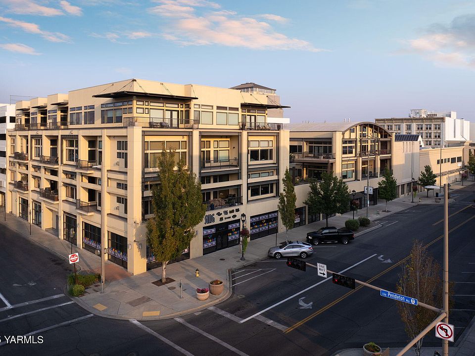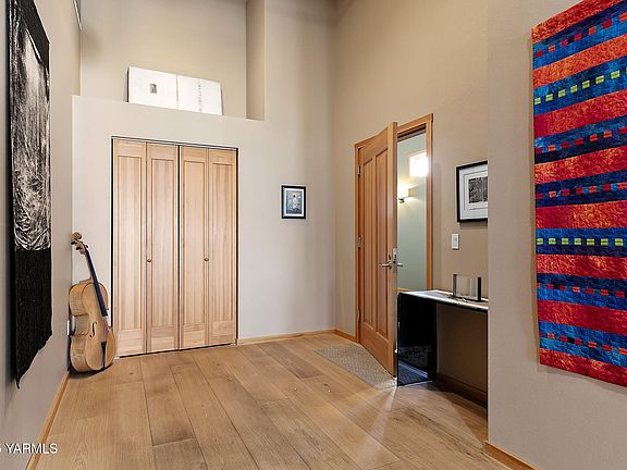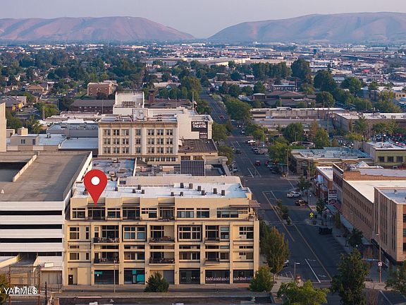 Urban Living Where History Meets Modern Design. Experience downtown Yakima living at its finest in this one-bedroom plus office/den condo at The Lofts, set on the historic site of the iconic Bon Marche. This stylish residence blends industrial character with modern comfort--wide-plank oak floors, exposed beams and ductwork, and soaring ceilings create an airy, urban feel, while warm cherry cabinetry, a sliding barn door, and custom built-ins add timeless sophistication. The chef-inspired kitchen, with island prep space, a double-drawer dishwasher, and soft-close cabinetry, flows seamlessly into the open living area, complete with a cozy tiled fireplace and private north-facing balcony--perfect for relaxing or entertaining. A sunlit office/den with glass doors provides flexibility for work or hobbies, while the spacious primary suite features a spa-like bathroom and a generous walk-in closet with built-in shelving and drawers for exceptional organization.Two secured underground parking spaces, a spacious storage unit, a private gym, and a community lounge round out this exceptional offering. All of this is within easy walking distance of the Capitol Theatre, downtown restaurants, breweries, tasting rooms, a movie theatre, farmers market, and year-round events--offering the freedom to explore everything Yakima has to offer, right from your doorstep.