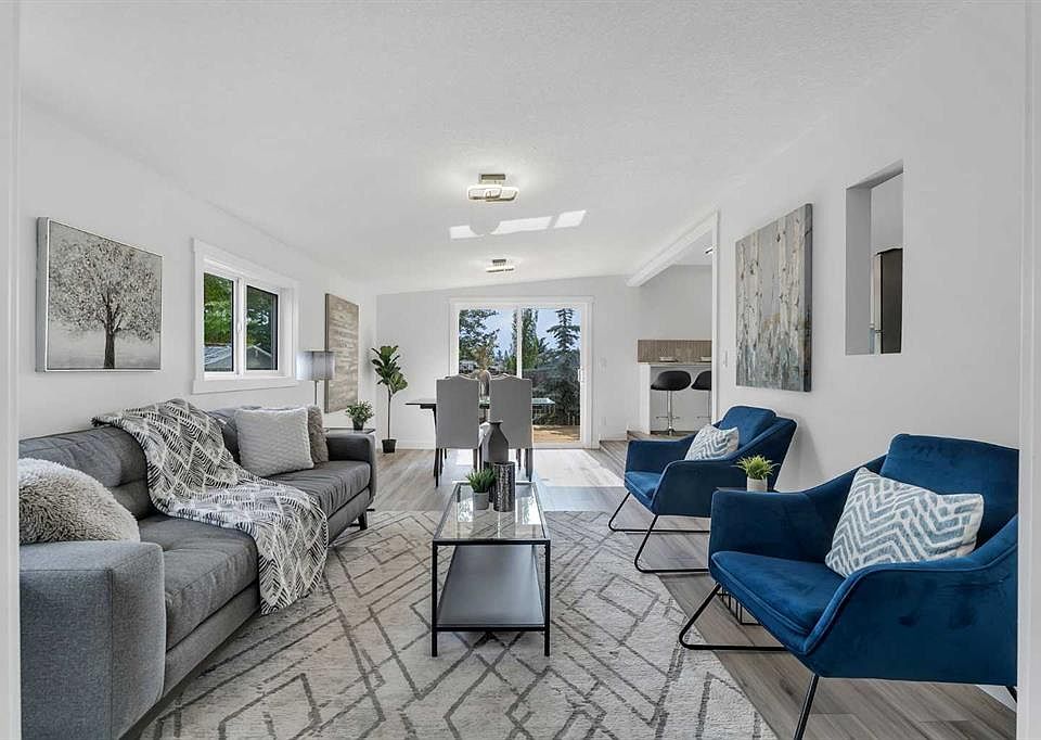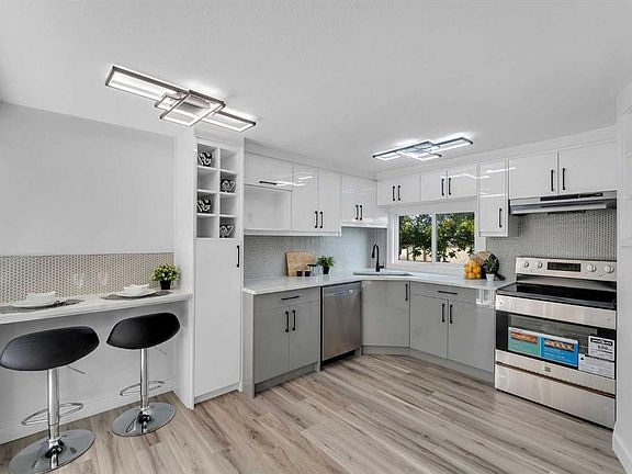 HIDDEN GEM / FULLY RENOVATED / NO CONDO FEES /40 x 100 LOT. Why purchase an apartment or a townhome when you can own a detached home for less without any condo fees and still own the land. Whether you're a first-time buyer, investor, or downsizer, this upgraded home in Big Springs, Airdrie is a smart move—offering over 1,160 sq ft of living space, a fully fenced private yard, backing onto green space and a single detached garage . Step inside to a bright open layout, NEW vinyl plank flooring, and a stylish renovated kitchen featuring quartz countertops, electric stove, range hood, dishwasher, and refrigerator. This home offers 3 spacious bedrooms, including a primary bedroom large enough for a king-sized bed, and a modern 3-piece bathroom with updated fixtures. Make the most of your outdoor space with a private yard, deck, and room to garden or relax. The 27' x 13' garage, parking pad, and extra off-street spots give you room for vehicles, toys, or workspace. Located on a quiet street with a full-sized 40' x 100' lot—and no condo fees—this property provides a rare opportunity for affordable homeownership with land included. You're close to the Genesis center consisting of gym, soccer courts, volleyball, swimming pools and so much more. Walking distance to schools, parks, shopping, and bike paths, this is a family-friendly neighborhood with room to grow. Contact your favorite Realtor today to view this move-in ready home with unbeatable value!