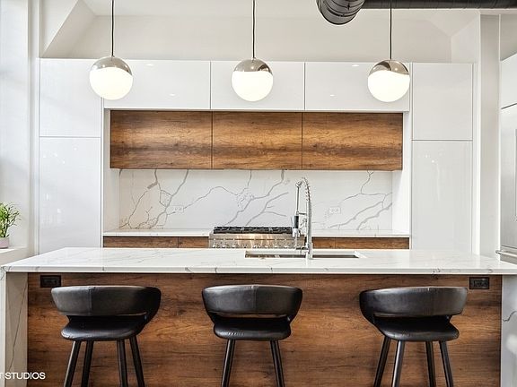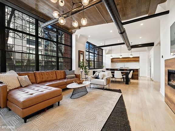 Radiating sophistication, this quintessential West Loop duplex loft features 3 bedrooms, 3 bathrooms, and a style unparalleled in the current marketplace. Upon entry, you'll immediately be taken aback by the wall of industrial-style 9' windows, towering ceilings with wood-stamped concrete, and dramatic black ductwork throughout. The mesmerizing kitchen boasts high-end Thermador appliances, gleaming quartz countertops with a waterfall-style island, flawlessly complemented by the quartz backsplash, and rounded out with custom white cabinets with warm, wood accents. Designer light fixtures illuminate the living room, kitchen, and bedrooms, adding an extra layer of allure, while white oak hardwood floors extend throughout the upper level. The guest bedroom & full bathroom on the main floor allow for privacy & convenience from the lower level when entertaining & hosting. Downstairs is the Primary suite: a tranquil haven, complete with custom closets featuring built-ins and an en-suite bathroom that exudes elegance with a double vanity, glass shower with Cifre Spanish tiles, and a separate soaking tub featuring artistic accents. The spacious second bedroom has been transformed into a multi-purpose space with custom California closets, perfect for an office or additional guest bedroom. The third bathroom downstairs continues the light and bright look of all the baths, complete with BAI plumbing fixtures and sleek finishes. Extra storage throughout, including additional closets in the hallway, one featuring built-in shelves, and the other with a washer, dryer, and sink. The entry foyer area offers a white cabinet for storage plus a wooden coat rack and bench, adding to the functionality of this beautiful home. Additionally, Hunter Douglas motorized window blinds have been installed throughout the home for added convenience. A coveted deeded parking space in the heated garage is also available for an additional $30,000, accessible through the lower level of the home. This breathtaking unit stands out from the competition, showcasing exceptional and impeccable beauty. The building offers a public rooftop deck with grills and sweeping skyline views of the city to the east, adding to the attraction of the home. The West Loop location is unbeatable - with Skinner Park and Elementary school, public transit, and a multitude of dining, shopping, and entertainment options mere steps away, such as Monteverde, Black Barrel, Viaggio, Ranalli's and everything along Restaurant Row on Randolph. Standing out amongst the competition, this contemporary yet warm Loft, quietly nestled on tree-lined Loomis St., is a true gem to call home.