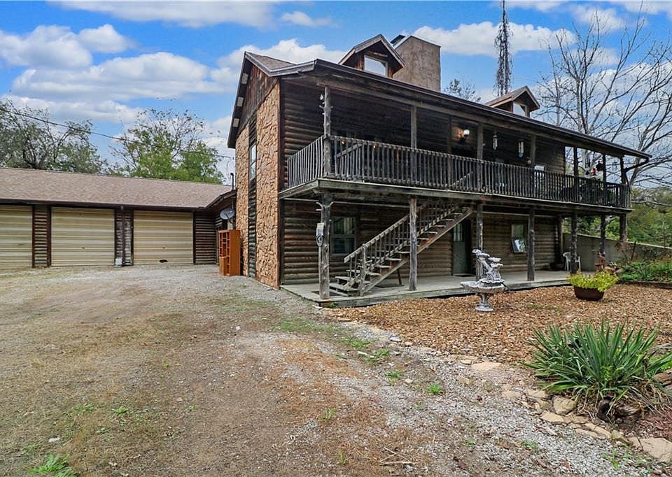 Take notice - 6 Acres NORTH of Warrensburg with a private stocked lake! Discover a rare opportunity to own this unique 3-bedroom, 2-bath Western-style log home. At the heart of the property lies a stunning 2-acre manmade lake, fully stocked and perfect for peaceful mornings or weekend fishing. Step inside and be greeted by a unique wood interior featuring a striking spiral staircase and handcrafted custom kitchen cabinets. The home exudes warmth and character throughout, blending rustic charm with thoughtful details. Outdoors, you'll find a variety of fruit and flowering trees, space to roam, and endless potential for gardening, relaxing, or entertaining. Large doesn’t even begin to cover the actual size of the shop/garage spaces with 3 oversized doors in one area, a wood working shop in another, and then a 4th garage PLUS a huge all concrete room. There is ample room for projects, storage, or hobbies. Additional features include a brand-new roof and gutters, as well as two septic systems for added convenience and capacity. Whether you're seeking a private retreat or a place to create your dream homestead, this one-of-a-kind property offers it all.