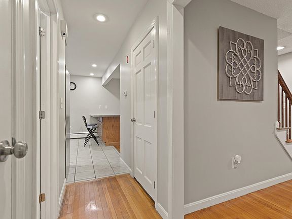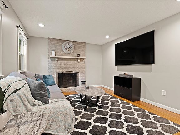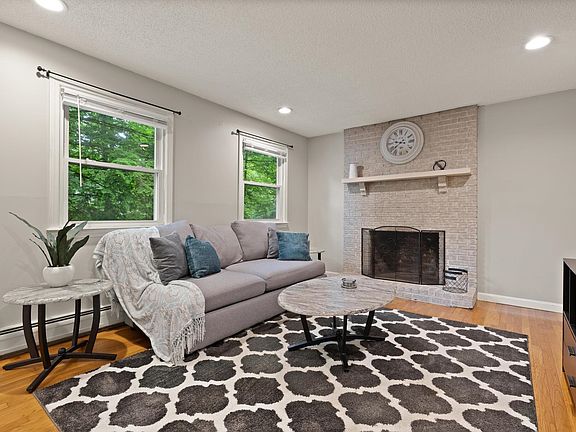 Welcome to this charming Gambrel style home with a spacious finished garage! Step into the cozy living room featuring a classic fireplace, gleaming hardwood floors, and recessed lights. Need an extra bedroom or home office? You're covered with another room boasting hardwood floors next to the 3/4 bath. The kitchen is a chef's dream with stainless steel appliances, recessed lights, and a peninsula with seating, all open to the dining area with beautiful hardwood floors. A large heated breezeway off the kitchen leads to the impressive 30x26 two-car garage, complete with heat & AC mini split, insulated doors, openers, and a 100 amp sub panel. Outside, the landscaped private backyard is perfect for gatherings with a fire pit and a handy shed. Don't forget to enjoy the front porch for some relaxing seating. Upstairs, the primary front to back bedroom offers a cozy sitting area with a fireplace, built-in shelves, and more hardwood floors. Two additional bedrooms with hardwood floors and a full family bath complete the second floor. The basement holds potential for further expansion. The true value of this property lies in the excellent condition and care the seller has put into this home and the finished garage. Don't miss out on this one!