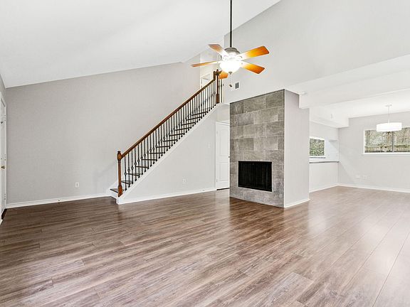 Newly remodeled, hard to find home, in Grogan's Mill in The Woodlands, TX! Vaulted ceilings upon entry and beautiful wide luxury vinyl plank wood flooring throughout the entire first floor. An abundance of windows make this home open and bright! All windows have new 2" cordless blinds. New carpet in the bedrooms, and new baseboards throughout the upstairs. Stunning tile on the gas burning fireplace. Gorgeous subway tile, white cabinets, and matching stainless steel appliances make this kitchen a must see! Newly installed hand railing and oak treads on the stairs. All new light fixtures throughout. Exterior and Interior just painted, 2021. Wooden deck, new sod and landscaping is perfect for your next backyard BBQ or get together! This home will not last long! In the heart of The Woodlands, close to shopping, restaurants, nature trails, parks, swimming pools, and much more!