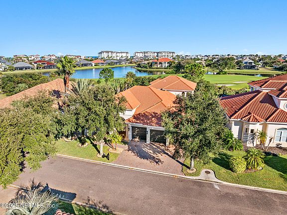 Welcome to this meticulously maintained residence located at in the coveted gated community of Ocean Hammock. This custom home was the former model home, finished with premium upgrades. Exceptional attention to detail including hardwood flooring, detailed woodwork, crown molding, archways and sculptured ceilings. Expansive main level living: formal dining, great room w/wet bar, breakfast nook, custom kitchen w/granite countertops, tile backsplash, stainless steel appliances, wine cellar. First-floor luxurious master suite: double tray ceiling, dual vanities, tiled shower, Jacuzzi soaking tub, walk-in closets, private access to the lanai. Bonus upstairs: large game/media room with its own wet bar and screened balcony overlooking the golf course. Outdoor oasis: screened lanai w/in-ground pool, spa, summer-kitchen, built-in fireplace, paved area ideal for Florida entertaining and resort-style living. Oversized 3-car garage, tankless w/h, central vacuum, and underground utilities. Cont. Lot size approx. 9,583 sq ft (roughly 0.22 acres), offering privacy and premium setting within the community. Built in 2008, block and stucco construction with tile roof, designed for both elegance and durability. Situated in the prestigious Ocean Hammock gated community, which offers beach access (1/2 walk), clubhouse, pool/spa amenities, golf course views, and resort-level lifestyle. Prime location in Palm Coast, Flagler County, close to beaches, golf, dining and nature. Schedule your private showing today and experience this home's unique combination of craftsmanship, amenities and setting. See Private remarks for recent updates and special features.