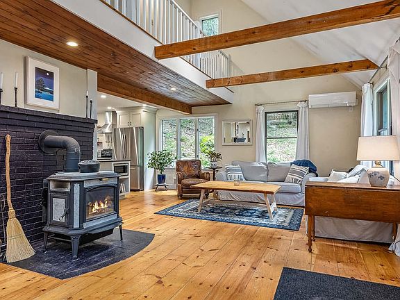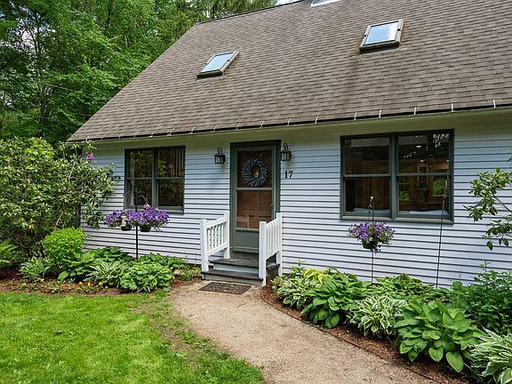 Welcome to 17 Oaklands Road! This adorable 3 bedroom, 2 bathroom cape sits on 5 wooded acres - a tranquil setting, conveniently located in Newfields, NH! When you walk in the front door you'll be impressed by the natural lighting in the open concept great room which includes vaulted ceilings with skylights and wide pine floors. The kitchen was renovated in 2020 and features island seating, gorgeous slate countertops, shaker style cabinets, yellow birch floating shelves and a pantry for storage. The first floor bedroom has direct access to the updated 3/4 bathroom with a tiled glass shower. As you go upstairs you'll find two bright bedrooms attached by the full bathroom. The new basement playroom was finished in 2023 with recessed lighting, flooring and wallpaper! The heating/cooling system was updated in 2018 to Mitsubishi heat pumps and to stay warm in the winter cozy up by the wood burning stove which was replaced in 2023. Outside you'll find a back deck for relaxing, well maintained perennial gardens, raised beds for growing vegetables, and woods to explore. This tastefully updated and well maintained home is ready for you to move right in!