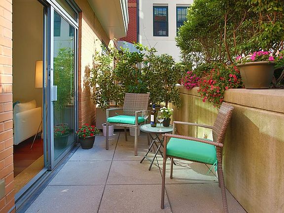 Inside - Outside Living at ONE FIRST. This bright and airy 2BR, 2BA property, located in the full-service condominium complex ONE FIRST, offers a rare outside space. A large patio extends the whole width of the condo with large sliding glass doors in the Open Living Space and the main bedroom suite. A row of bushes, connected to the luscious courtyard add a sense of privacy. When entering this delightful condo some of the first impressions are a feeling of spaciousness, which is supported by the high ceiling, the large sliding door to the patio and the gleaming cherry wood floor. The cherry wood kitchen cabinets, as well as the "Midnight" granite counters complement the cherry wood floor and add a sense of luxury. The main bedroom suite offers, beside direct access to the patio, two rows of large closets and a marble bath room. The well proportioned second bedroom and the main bedroom feature new carpets. The garage space # 24 is included. Furniture inclusion and related price negotiable. Renter responsible for utilities