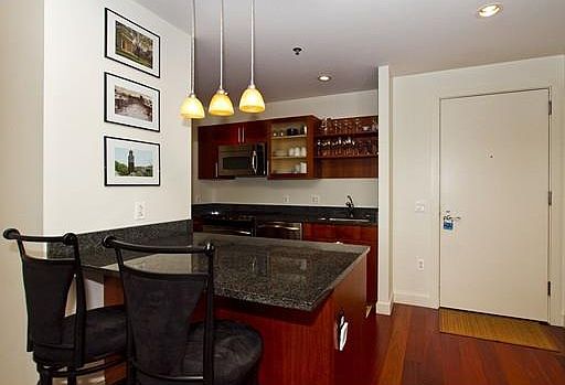 Fantastic top floor unit available at the coveted One First complex. This sunny, east/southeast facing unit has floor to ceiling windows and amazing city views. Great layout with an open kitchen/living area and bedrooms on either side of the unit. Kitchen features cherry cabinets, stainless-steel appliances and breakfast bar. The master bedroom has an en-suite bath. Hardwood floors throughout the unit as well as great closet space and in-unit laundry. 1 garage parking spot is also included. All of the amenities you would expect in a full service building are here: 24hr concierge, clubroom/library, fitness room, gorgeous courtyard and common roof deck. Walk to the T, parks, mall and restaurants. Currently leased through 5/31/16 for $3250 per month.