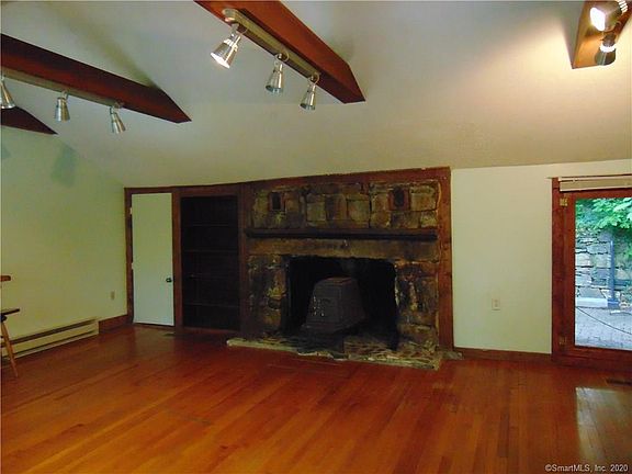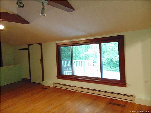 Year round home tucked in nature on secluded private lot at the end of a Cul de Sac, this property is entitled to private association beach rights. Bright and sunny rooms with abundance of windows for seasonal views of Beautiful Lake Pocotopaug. Set foot in the main entrance and enjoy cathedral ceilings, field stone fireplace in the very generous living room. Living Room is open to kitchen with bay window to sit enjoy Coffee as you watch the sun rise. All rooms are in very neutral colors with old charm of natural wood. 2 Bedrooms and laundry on the main floor and a few steps up to the finished loft could be 3rd & 4th bedrooms, artist studio, office, walk in closet (the options are endless Many updates to include, water heater, drilled well, roof and additional insulation in the basement. Relax at the end of your day on the over sized front porch with newer railings, custom flower box and electrical outlets. Outbuilding in the back yard for storage and mature landscaping awaits your personal touches. Walk to the water and enjoy a day at the beach, boating, fishing or enjoying nature at its best.