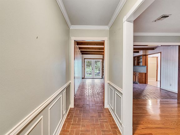 This Picturesque Panorama Home Won’t Last Long! Well-kept 3BR/2BA/2GAR and circle driveway. Beautiful flowers surround the property, creating a natural habitat for butterflies and cheerful birds that add charm and curb appeal. Inside, a wood-cased opening connects two dens, blending classic and modern. One den is perfect for entertaining while the second features French doors to the patio, a cozy gas log fireplace, rustic cedar beams, and a built-in desk/library nook. The bright white kitchen is perfectly placed between a traditional dining room and a breakfast nook. Adjacent to the foyer is a large walk-in cedar closet. Primary bedroom includes two walk-in closets with organizers, and a built-in vanity with high permitter shelving, and ensuite bathroom with walk-in shower. Two guest bedrooms feature inset bookshelves and closets with floor-level shoe shelfs. Plantation shutters and crown molding flow throughout. Spacious Attic/Detached Garage/Sprinkler System/Shed - AC Replaced 2022.