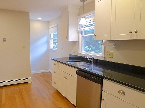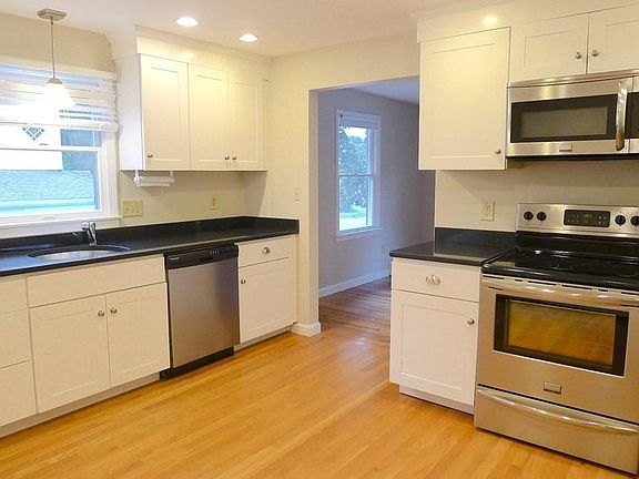 Newer White Shaker style kitchen cabinets & midnight granite counters & all Stainless steal appliances, including microwave above the stove. This lovely & spacious 2nd fl 3 BR apt is well maintained in a Newton Upper Falls two fam on a quiet side street. Nicely painted with contemporary colors, the unit has all nice oak hardwoods, beautifully refinished. Huge LR open to dining area that has plenty of light from lots of windows. Washer & Dryer is provided for you. Bathroom was updated last year. Great unit with plenty of easy off-street parking and an easy walk to the T and Dunn-Gaherin's Food and Spirits. Shared yard in the back. You will love living here! No smokers or dogs please.
