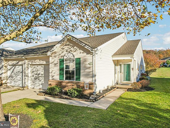 Welcome to 17 Peppergrass Drive N in the highly desirable Holiday Village East! This end-unit townhome is filled with natural light and designed for comfortable, low-maintenance living. Enjoy spacious formal Living and Dining Rooms, a freshly painted eat-in Kitchen with classic white cabinetry, and a bright four-season Sunroom overlooking the backyard. Outside, a concrete and brick patio offers the perfect spot for relaxing, grilling, or entertaining. The Primary Bedroom at the rear of the home features two standard-depth closets and a private Ensuite Bath. A guest Bedroom and guest Bath are conveniently located at the front. Recent updates include new vinyl flooring in the foyer and front Bathroom, a newer water heater (2017), and a sprinkler system to keep the lawn lush and green. Additional highlights include a Laundry Room, one-car Garage with interior access, and attic storage. Holiday Village East is a vibrant 55+ active-adult community offering a low-maintenance lifestyle, with lawn care, leaf removal, and driveway snow removal included. Residents enjoy a seasonal pool, clubhouse, daily activities, tennis, bocce, and pickleball courts—all for just $156/month. Conveniently located near award-winning hospitals, shopping, dining, and with easy access to Philadelphia and the Jersey Shore, this home combines comfort, community, and convenience. With its bright, inviting spaces, modern amenities, and easy-living lifestyle, 17 Peppergrass Drive N is ready to welcome you home—fall in love and make the smart move today!