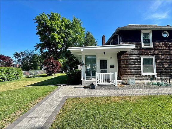 The lovely King Phillip neighborhood on the east side of Bristol is highly sought-after for its tranquility, proximity to downtown, mooring rights, and views of the Mount Hope Bay. Just one block up from the waterfront on an oversized corner lot, discover 17 Platt St; a sweet cottage offering ample square footage, outdoor space, and flexibility. The first level offers multiple living spaces including a three-season sunroom, updated eat-in kitchen with cabinets-for-days, and a first floor primary suite or potential in-law space. Upstairs, find an additional 2-3 bedrooms with hallway bath and easterly views of the bay. Many bonuses to include two laundry areas with washer/dryers included, jacuzzi tub, and basement storage. The garage is not adequate for cars but would make a great workshop or storage space! Just 25 minutes to Providence and 30 minutes to Newport and ocean beaches.