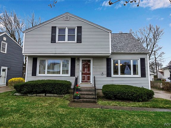 Welcome to this beautifully maintained 4-bedroom, 2-bath home that perfectly blends comfort, character, and functionality. From the moment you step inside, you'll be greeted by neutral paint tones and an abundance of natural light pouring in through large windows, creating a bright and inviting atmosphere throughout. The spacious living room flows seamlessly into the dining area, which features built-in shelving and expansive windows — an ideal space for entertaining or hosting special occasions. Beneath the existing carpeting, original hardwood floors await. The kitchen offers solid white corian countertops, generous cabinetry, and plenty of room to add an island or table — a versatile space ready to be customized to your style. The main floor also includes a bedroom and full bath, perfect for guests or convenient one-level living. Upstairs, you’ll find a second full bathroom and three generously sized bedrooms, each with large closets and beautifully preserved hardwood flooring. A wide upper hallway includes built-in cabinetry, providing additional storage and functionality. Step outside to enjoy a spacious yard, an oversized detached garage, and a lovely covered patio — perfect for morning coffee or outdoor gatherings. Additional updates include a new roof (2021), furnace & A/C (2013), many vinyl windows and backyard drain tile system. This house has it all and is ready to be your next home.