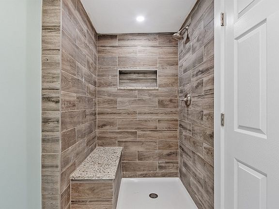 Electric fireplace insertTiled showerVinyl replacement windowsLevel backyardPlayful backyardNew u-shaped kitchenFormal dining room