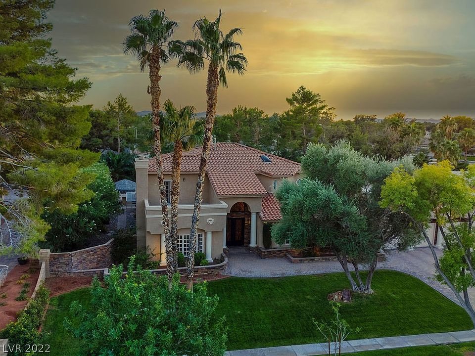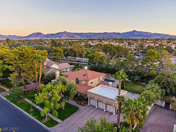 WOW! Reduced $175,000 on this Spectacular Custom Home nestled in well established quaint Quail Ridge Estates. Paver driveway & walkway leading to Massive Roman Columns and Double Wrought Iron and Glass doors with Arched Gilded transom window. Rich wood floors & classic style fireplace. Living room opens to formal dining room with French Doors leading to side patio. Master bedroom with large sitting room and veranda overlooking beautiful landscaped yard. Four wood burning fireplaces. Kitchen has bright breakfast nook and access to a paver side patio with a green house. Magnificent private rear yard with large pool, Palapa and paver decking highlighted by mature landscaping & half court basketball area. This home is minutes away from sporting event Arena's. Vegas will hosting final 4 and Super Bowl 2024.
