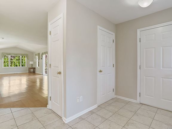 Welcome to one of the most desirable, centrally located 55+ complexes in town with meticulously manicured landscaping, and brand-new roads, roofs and gutters. Nestled in a prime location within the complex, find convenience and comfort with one-level living at its best in this freshly painted 2 BD / 2 BTH Ranch End Unit with attached garage. Inviting open floor plan, wide open tiled entryway, generously sized rooms, laminate flooring and a full unfinished basement offering plenty of storage and finishing potential. Lovely EIK features granite counters, tile backsplash, tile flooring, crown molding, recessed lighting and a pantry. Sun filled LR/DR touts vaulted ceilings and sliders that open to a private TREX deck, overlooking a serene backyard. The large primary BD showcases a vaulted ceiling, a walkin closet and a beautifully remodeled handicap accessible full bathroom with zero threshold shower and grab bars. A spacious second BD, a full hall bathroom with tub, and hall laundry area complete the main level. Brand new roof/gutters just completed in August '25, new furnace installed in December '24, and new railing at front door entry. Spacious attached garage also adds more storage. Clubhouse for community activities, meetings, games. Walk to shopping, library, town hall, concerts/fairs on the green, restaurants, post office and just a few minutes' drive to highways, mall, golf, parks, trails. Just move in and unpack!