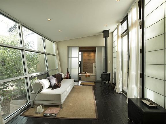 International Sophistication is found in this extraordinary contemporary home. Attention to detail began with the thoughtful siting of the structures on the lot. Sangre de Cristo views and vistas of the Galisteo Basin are enjoyed from the home. Built with a seamless combination of glass, steel and Autoclaved Aerated Concrete block and inspired by Japanese Zen-like features the home is both a sanctuary and an inspiration. Japanese style soaking tubs in the two exceptional bedroom suites add to the comfort of the home. Light-filled, spacious hallways connect the well designed areas of the house giving the home the name, "Bridge House". The kitchen with upscale appliances, an inviting guest house and the spacious 900 sq.ft. studio complete this executive property. The home was thoughtfully designed using many green, low impact, earth friendly materials and methods. Do not miss this stunning Japanese contemporary compound nestled in a quiet, lovely pinon forest.