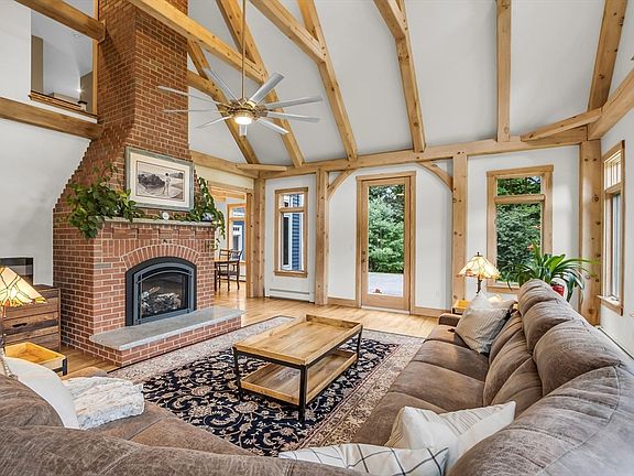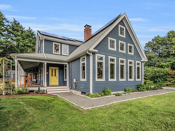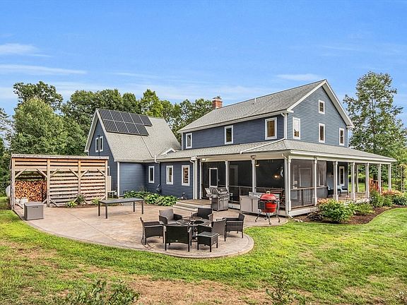 An inviting wrap around farmer’s porch welcomes you to this stunning contemporary farmhouse surrounded by lush gardens, mature trees & sprawling lawn creating a serene backdrop for outdoor living & entertaining. Inside, the open-concept layout seamlessly connects an expansive family room w/vaulted beamed ceiling, soaring fireplace & walls of windows flooding the room in natural light to the gourmet kitchen adorned w/cozy wood stove, expansive island, gas cooktop,pantry & dining area. A charming screened porch overlooking the backyard oasis offers the perfect retreat to unwind & soak in nature's beauty. A 1st floor office/bedroom w/adjacent bath offers versatility as needs change. On the 2nd level you'll find a luxurious primary suite w/spa-like bathroom, spacious bonus room, 2 additional bedrooms, & full bath. With its unique blend of traditional farmhouse style, contemporary elegance & modern high efficiency features, this home is a true gem waiting to be discovered!