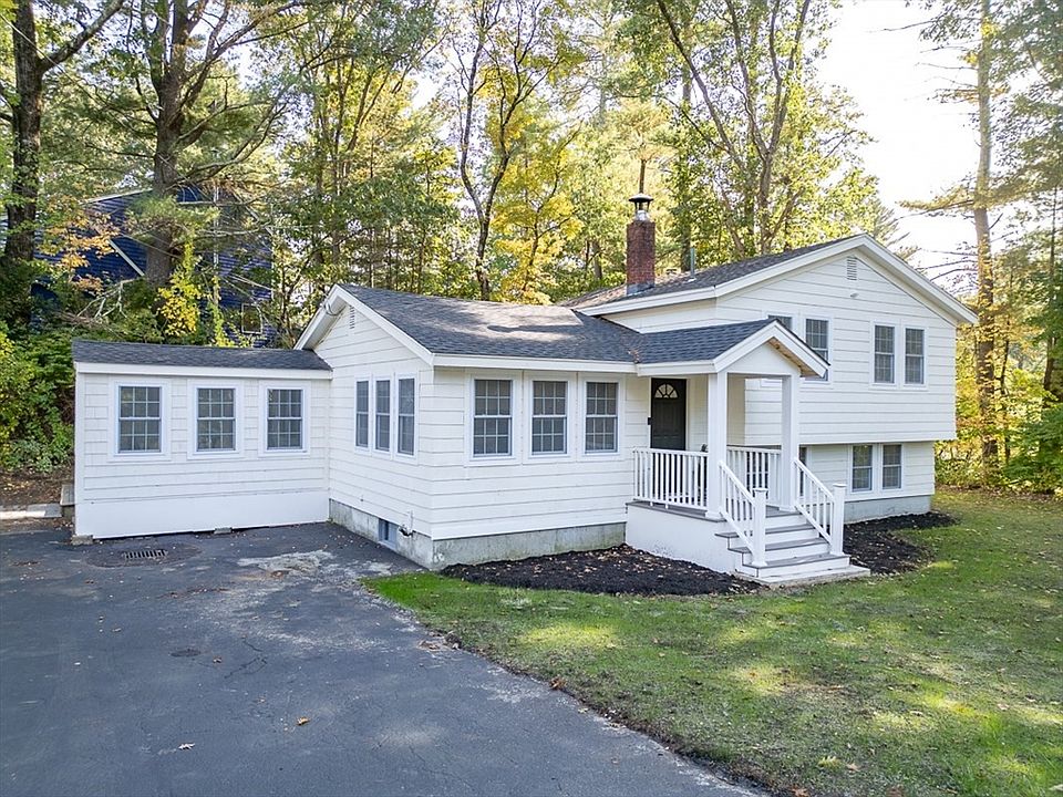 Enter into this renovated raised ranch, beautifully set on just under a 1/2 acre w/ the perfect balance of privacy & location. Light flooring leads into the open concept living room featuring cathedral ceilings, recessed lighting & plenty of windows flooding the space w/ natural light. The kitchen showcases white shaker cabinets, new appliances, a quaint island & opens to a dining area/enclosed porch wrapped in windows. Up a few steps, find 3 DRMS & a stunning full BA w/ a custom-tiled walk-in shower, glass surround & built-in seating. The finished lower level adds 400+ sq. ft. of living space, including a bonus room w/ a woodstove on a brick hearth, an office/flex room, full BA & a utility room. Additional highlights include central AC, a new roof & a low-level deck for outdoor enjoyment. All tucked back from the bustle of town, yet close to shops, schools, dining, & just minutes to Route 3. Showings begin at an Open House Sat 10/4 from 11-1pm w/ & Sun 10/5 from 2-4pm.