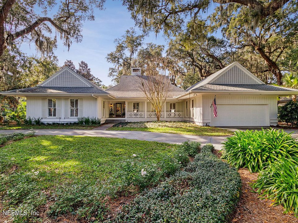 Nestled amidst the lush tree canopy along one of Omni Amelia Island Plantation's most sought-after streets, this executive-style residence is on 1/2 acre+ lot overlooking the scenic Oak Marsh Golf Course. All on one level, the layout presents a comfortable arrangement with a clear distinction between the primary suite and guest quarters. Abundant natural light floods the main living space through expansive transom windows, sliding glass doors, and a soaring vaulted ceiling. The kitchen boasts recent upgrades including bespoke cabinetry, marble countertops, a sleek Sub-Zero glass front refrigerator, and a high-performance Jenn Air gas cooktop. Adjacent to the kitchen, a convenient butler's pantry showcases a Bosch built-in coffee maker, Scotsman ice maker, and Sub-Zero beverage refrigerator. Additional highlights encompass renovated bathrooms, new flooring, plantation shutters, and remote-controlled window shades, culminating in a residence of undeniable elegance and sophistication.
