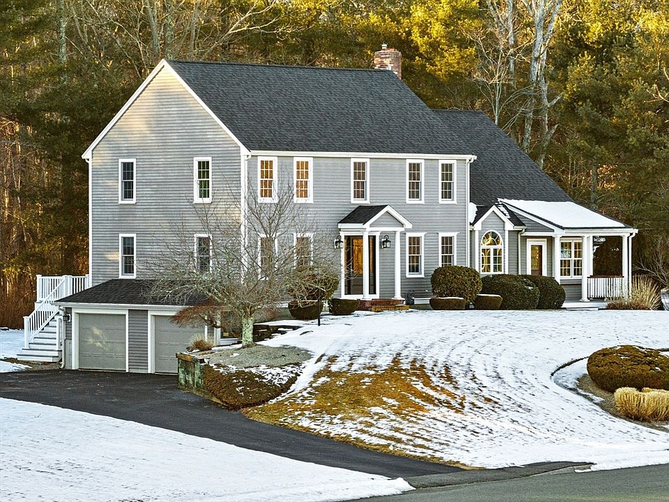 This beautiful spacious home is uniquely designed with an adjoining in-law apartment to accommodate multiple generations while balancing privacy, shared spaces, and functionality. Nestled on a private acre in a premiere cul-de-sac neighborhood, the home features a total of 13 rooms, 2 full size kitchens, 5 bedrooms, and 3.5 baths. In the primary home you welcome guests into the sun splashed foyer leading to an open concept designed kitchen, dining and living room. Upstairs you will find 3 generous sized bedrooms, an updated en-suite bath, walk in closet, and an in-home office. Bonus home gym in lower level. The adjoining in-law space has a separate entrance with farmers porch. The 1st level offers a sunny oversized eat in kitchen, primary bedroom, full bath, and laundry. Two additional bonus rooms upstairs. This home is a gem, meticulously maintained, quality built and feels like new with polished hardwood floors and c/air. Easy access to highway, golf, university, and commuter rail.