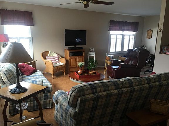 This lovely Danbury model has been extremely well cared for. Walk into a living room with laminate floors, plantation shutters and opens to family room. Newer replacement window's through out home. Laminate flooring through out house except for the bedrooms. Newer appliances in Kitchen. There is a 14'x18' 3 Season porch off of the family room. Air Conditioner is 2 years old. Many of the baseboard heaters have been replaced as well as many thermostats. This lovely house awaits new owners.