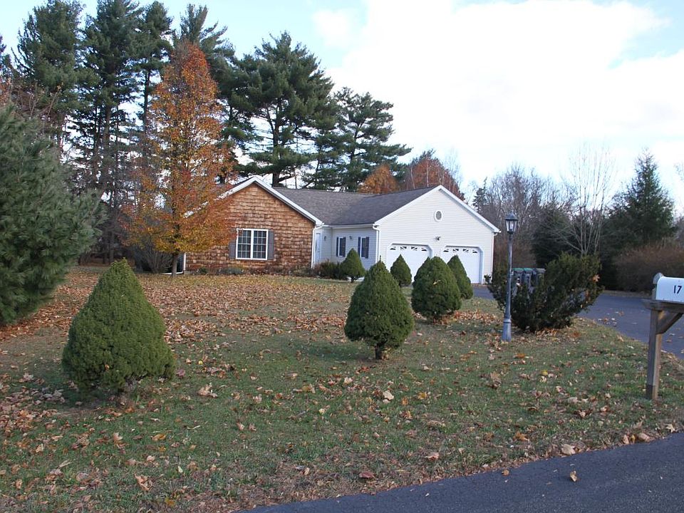 Tucked away at the back of a private road you will find a handsome ranch home on 1 acre of park-like grounds. 3 full bedrooms and 2 full baths , a full basement unfinished and a large attached 2 car garage. Just under 2,000 square feet of living space here close to all amenities but quiet enough to hear the birds sing. House comes equipped with natural gas , underground utilities , and a back-up electric gas generator in the event that power goes out.