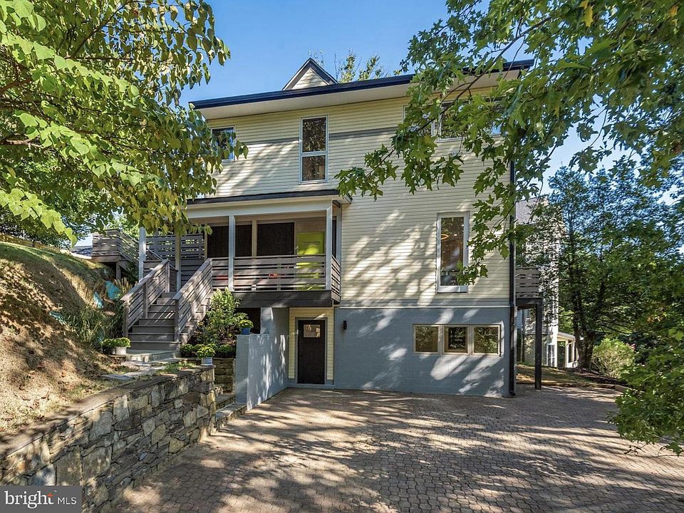 This exceptional contemporary home has been completely reimagined and expanded, offering a one-of-a-kind living experience in Takoma Park but with a Silver Spring address. Nestled on a huge 13,000 sq. ft. lot, the property provides ample space for entertaining, gardening, and enjoying total privacy within a fully fenced yard. Even the driveway has been expanded for added convenience. Designed to break free from the ordinary, this striking contemporary retreat offers breathtaking treetop views from every window. Originally built in the 1990s, it was completely transformed in 2022 into a sleek, modern masterpiece with high ceilings, dramatic black-framed glass doors, and sophisticated finishes throughout. The chef’s kitchen is a showstopper, featuring Bertazzoni gas cooking, high-end custom appliances, and a built-in iPad station—perfect for checking recipes or staying connected. Vintage estate doors sourced from Pennsylvania blend seamlessly with premium Pella French doors, while the powder room adds a touch of European elegance with custom wallpaper imported from France. The living spaces are warm yet dramatic, anchored by a wood-burning fireplace with natural wood cladding and bold black-and-white tilework. The primary suite is a true sanctuary, perched in the trees with walls of windows that frame stunning sky views. The spa-like en-suite bath is designed with beautiful leafy accent tiles that echo the home’s natural surroundings, and even the walk-in closet has a window for added charm. Three additional bedrooms offer flexible living space, while the fully finished lower level includes a bedroom, full bath, wet bar, and private entrance—ideal for multi-generational living, a home office, or an income-producing rental opportunity. The backyard is an entertainer’s dream, featuring a spacious screened porch and barbecue deck, perfect for hosting gatherings or simply enjoying the outdoors. Multiple balconies and decks create an effortless indoor-outdoor lifestyle, making this home feel like a private retreat in the heart of the city. Located within walking distance to all that Takoma Park has to offer—community events, farmers markets, shops, and dining—this home provides the perfect blend of modern design and urban convenience. Sligo Park is nearby for biking and hiking, and commuting is easy with access to downtown Silver Spring and Takoma Park Metro. Designed by award-winning local builders, recognized for their exceptional historic home remodels in Takoma Park and throughout D.C., this property is truly a lovely place to call home.
