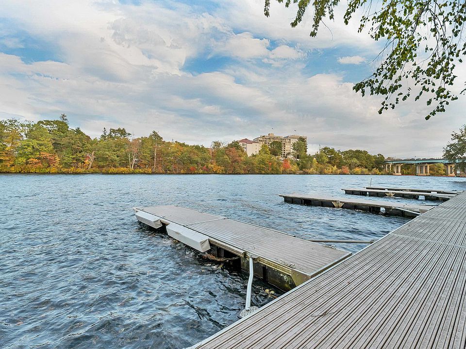 RARE WATERFRONT OPPORTUNITY on the Merrimack River! Enjoy luxury and convenience in this exceptional townhouse offering true one-level living with a PRIVATE INTERIOR ELEVATOR ON ALL LEVELS. Enter from the level garage into a spacious mudroom with a walk-in closet and an ideal versatile space now being used as an office space overlooking the water. Or enter from the welcoming foyer leading to the elevator and access to the main living levels. Upstairs, take in breathtaking river views from the open-concept fire-placed living and dining areas. Step out onto the expansive deck to relax, entertain, or watch the wide river flow slowly and consider taking your boat out for the day. As night falls watch the city lights shimmering and then take a walk to all that the city has to offer, from entertaining to lovely restaurants. The elegant kitchen is perfect for gatherings or quiet evenings at home. A half bath and laundry with built-ins complete this level. Arriving at the the top floor features a luxurious primary suite with a walk-in closet and private balcony—perfect for morning coffee or evening sunsets. Included on this level, a large comfortable second bedroom and its own full bath. Rarely available, this high-end riverfront home offers the best of both worlds: a serene, vacation-like feel with all the amenities and energy of city living just steps away. Showings begin this weekend 11/08/2025 with additional times to view at open houses Saturday 11a-1p and Sunday 2p-4p