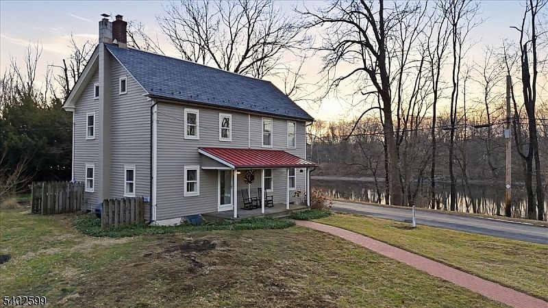 Built in 1836, this three-bedroom, one-and-a-half-bath colonial is set along one of the most private roads in Hunterdon County, directly on the Delaware River and within walking distance to the Riegelsville boat access. With river frontage at your doorstep, outdoor recreation is part of everyday life. Fish, kayak, tube, or walk down to the water and enjoy the changing seasons. Bald eagles are a familiar sight, often seen right from the front of the home. An expansive outdoor patio creates the perfect setting for gathering, dining, or simply taking in the river views and surrounding landscape. A one-car garage adds everyday convenience without taking away from the home's historic character. Inside, original wide-plank floors, hand-hewn beams, and period details reflect the home's early history while creating warm, comfortable living spaces. The main level offers functional gathering areas with an upgraded kitchen, while the three bedrooms provide quiet retreats at the end of the day. An oversized walk up attic can be finished or used for more storage. The home works equally well as a full-time residence or a second home for those looking to escape the pace of daily life without giving up accessibility. Private, riverfront, and rich in character, this is a rare opportunity to own a Delaware River property that balances history, outdoor living, and everyday comfort. If you love nature, privacy, and homes with a true sense of place, this property is worth experiencing in person.