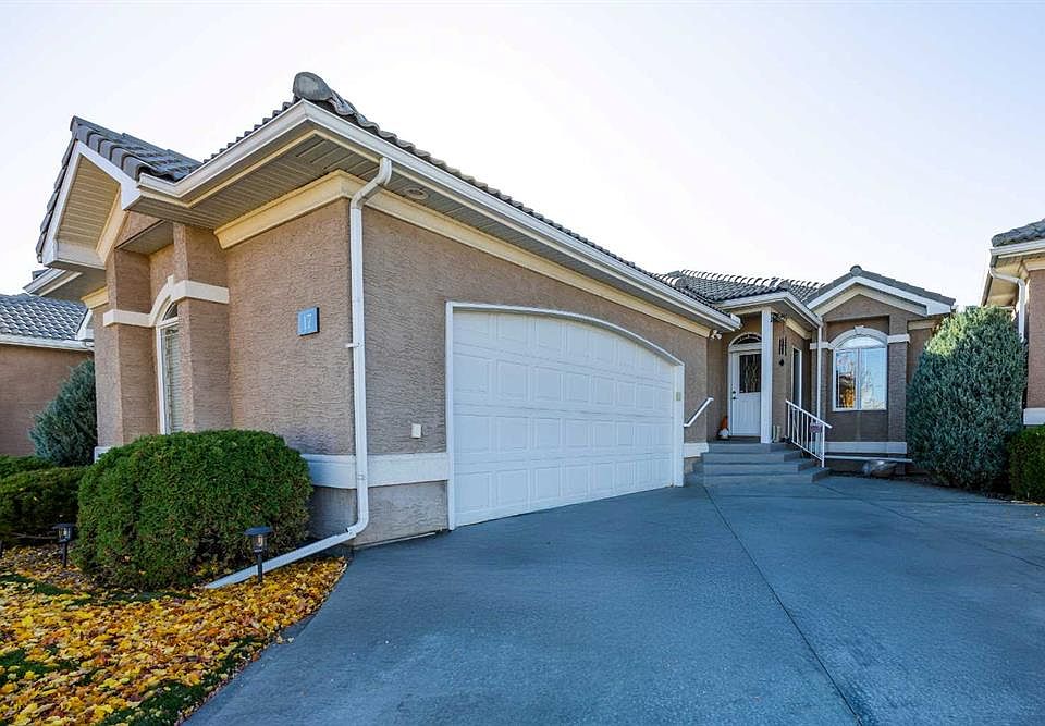 Every now and again, you come across a property that really impresses you and immediately you know BUYERS will feel exactly the same way. The CONDITION and LOCATION of this great property would score top marks and because of this, it's important for all Buyers not hesitate to set up a showing with your favourite Real Estate agent. This walkout out bungalow is located in a respected gated neibourhood, the beautiful community known as the “River Ridge Garden Homes”. Some unique features include: tiled roof; double attached "heated" garage, no carpets except on the staircase, hardwood or tile throughout, 1+1 bedroom and 2+1 bathrooms, an open style main floor with a lovely front den/library room, main floor laundry, a fireplace in the living room, quartz kitchen counter tops and light maple cabinets, and a covered enclose LARGE deck with gas-line and a heater to make three season use easy. The back faces south overlooking the fountains and beautifully landscaped park AND finally triple pane windows throughout the unit. Going down the turnback staircase you will be treated to a large “L” shaped family room, heated floors, 9' ceilings, another full bathroom, a storage room and of course the second bedroom. Exiting the lower level to the 'second' covered deck, again overlooking the very well managed and serene setting all landscaped with beautiful large trees, walkways, fountains and the privacy and solitude we all desire. The demographics of this community of like-minded peers who wish to enjoy a five-star accommodation yet have the privacy, security and quiet that suites the lifestyle of many of the 55+ age bracket. The Garden Homes has low condo fees and offers a maintenance free lifestyle. The owners have access to the beautiful and many condo amenities at 29 River Ridge Dr. N.W. Pets allowed with approval of the board. ***NOTE: Title Insurance will be offered and paid for by the Seller for the Buyer in lieu of an RPR. Watch for the lights in the park behind – they are spectacular! MORE PICTURES will be attached today.