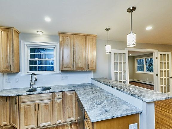 Completely renovated, oversized multi-level ranch in sought-after and picturesque Ashland neighborhood. 2,400+ sf of superb finishes on two levels featuring 3 generously-sized bedrooms, 2 all new baths, formal dining room, expansive living room with fireplace, mudroom, gorgeous new gourmet kitchen with breakfast bar, granite and quality GE stainless appliances. Beautifully refinished hardwood floors and recessed lighting throughout complement a contemporary open floor plan - perfect for entertaining. Fully finished lower level with spacious playroom, additional 4th bedroom/office and storage room. All new baseboard heating, electrical, plumbing, lighting, roof and much more. Enjoy the 3 season porch overlooking landscaped private grounds with raised gardening beds and kids treehouse -- perfect for year-round fun! Terrific neighborhood setting, super convenient to shops and commuter routes.