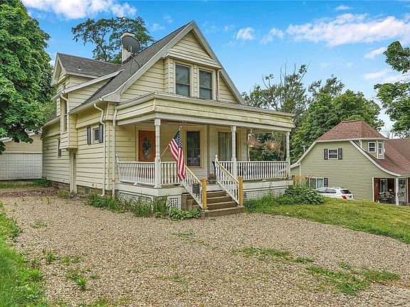 "Must See" Village Home well maintained. 3 Bedrooms 1.5 Bath, 1.7 Story. 1692 Sq Ft. Partially fenced yard. Architectural shingled roof. 2 car garage with overhead door opener. Also electric and large workbench in garage. Front porch and large rear deck. Many recent improvements (see attachments). Home features huge living room with large bow window facing the front porch. Ceiling fans in almost every room. Formal dining room with pass through from kitchen. Kitchen has island and plenty of cupboards. Majority of flooring is newer. 2nd floor has laundry hookup. 9x9 entry room from rear deck. Half bath on 1st floor. Large front entry, partially open. Aluminum siding. Move-in ready. Nice interior layout. Great location! Close to all amenities: shopping, school, lake - all on a quiet neighborhood street.