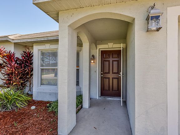 If you are looking for a home with room for the family, or for guests, this home is the perfect match. The welcoming entry leads you through the formal living room with bay window into the fully equipped kitchen with both a convenient breakfast bar & eat in area. Glass sliders lead to the large covered lanai overlooking the oversized fenced backyard. Yard has plenty of space for gardens, children to play, pets to run or to put in a pool. The family room has a vaulted ceiling & is the favorite gathering spot for relaxing at the end of a busy day. Large Master bedroom with vaulted ceiling, walk-in closet & private master bath with walk-in shower. The split bedroom plan allows for some privacy when guests come to visit with 3 additional bedrooms, laundry area and full bath. Home also includes hurricane shutters. The A/C is approximately 3 years old. The interior has been freshly painted. Make this your permanent residence, 2nd home or an investment property. House is a must see with a great floor plan and lots of character. All measurements are approximate & not warranted.