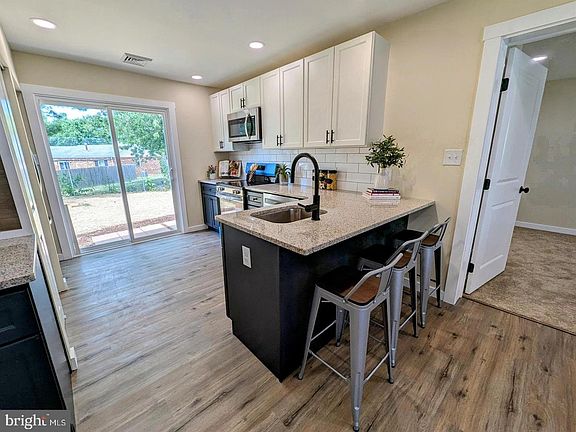 All brick ranch home in a sought-after community, tucked away on a private cul-de-sac lot. This 3 bedroom, 2 full bath home has been fully renovated from top to bottom and offers about 1,100 square feet of comfortable living space. The kitchen is the true centerpiece here, designed with all-wood shaker-style cabinets with soft-close doors and drawers, black hardware, granite countertops, tile backsplash, and a Frigidaire stainless steel appliance package. You’ll love the ceramic top range with air fryer, over-the-range microwave, dishwasher with stainless tub, and the French door refrigerator with ice maker. The layout also includes a breakfast bar that opens to the spacious living room, a Pella sliding glass door to the large backyard, and a custom coffee station with floating shelves, beverage refrigerator, and extra cabinet storage. Luxury vinyl plank flooring runs through the main living areas, while the primary bedroom stands out with its dramatic brick accent wall, recessed lighting, and ceiling fan connection. The primary bath has been completely redone with a stacked tile shower and niche, brick wall detail, comfort-height vanity, and dual flush toilet. The hall bath is updated with the same high-end finishes. Two additional bedrooms feature overhead lighting, ceiling fan hookups, and upgraded carpet with thick padding. The home has all new systems including a York high-efficiency HVAC, hot water heater, new circuit breakers, outlets, switches, and recessed lighting throughout. The exterior is all brick with a brand new architectural roof, new Pella double-hung windows, and a new front door. The location is hard to beat, with shopping just a mile away and easy access to Routes 1, 7, 40, and 273. Christiana Mall, Christiana Hospital, and countless other amenities are all within 5 miles. This home is move-in ready !